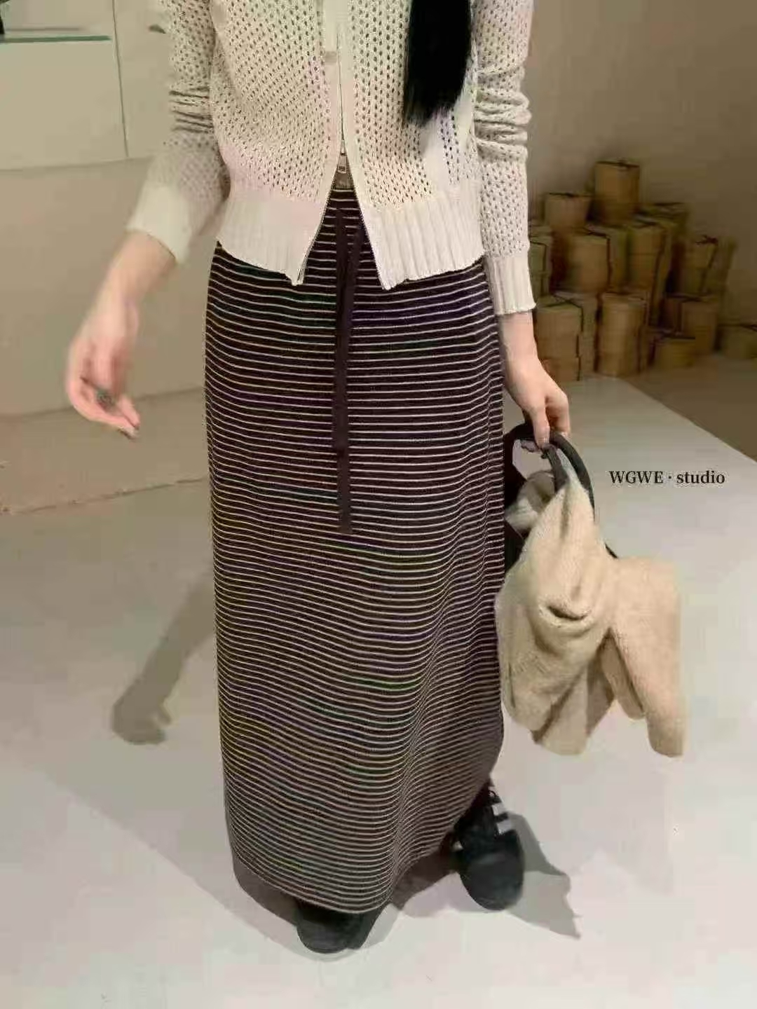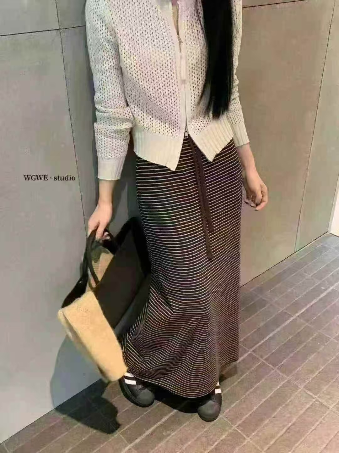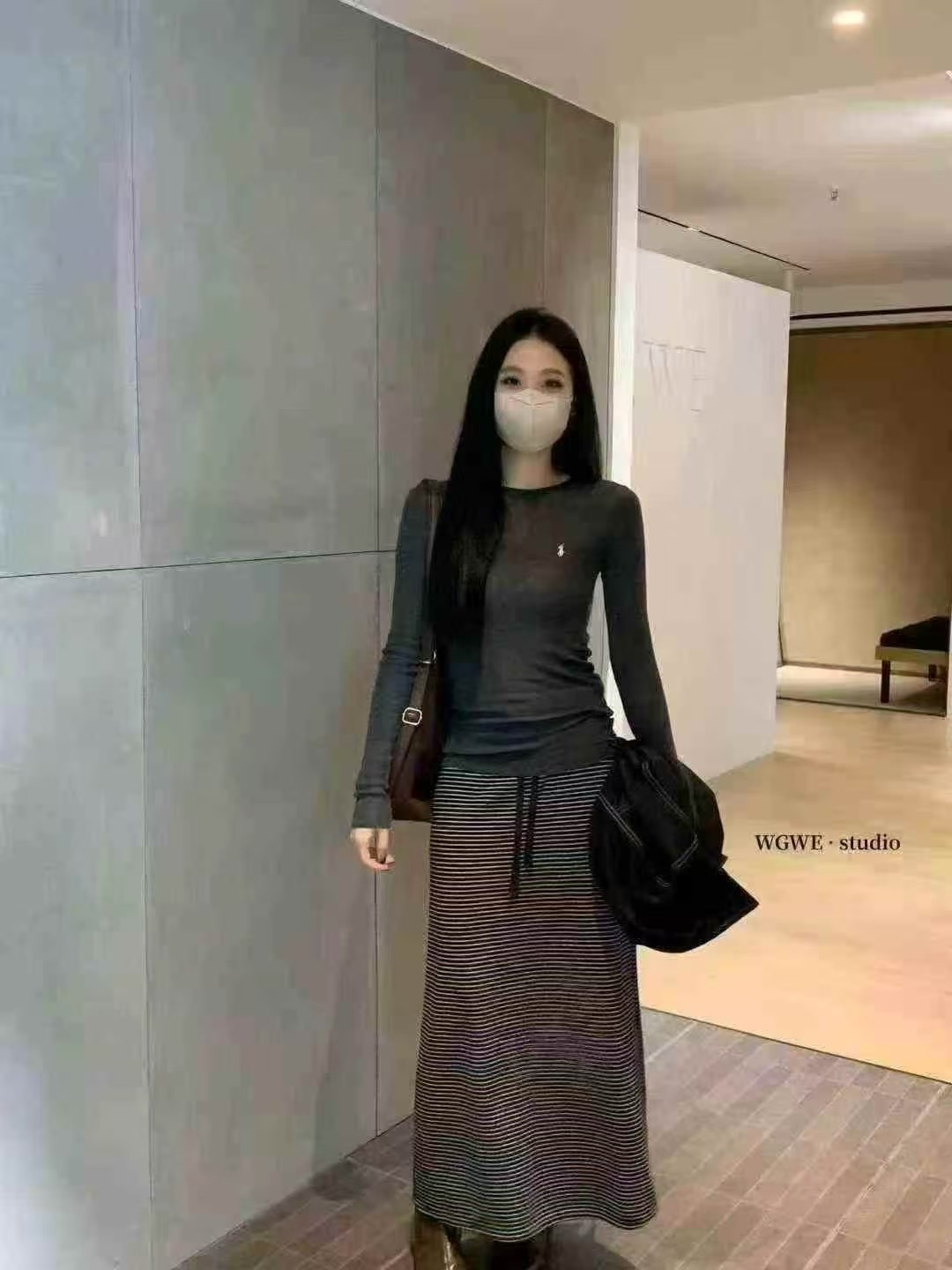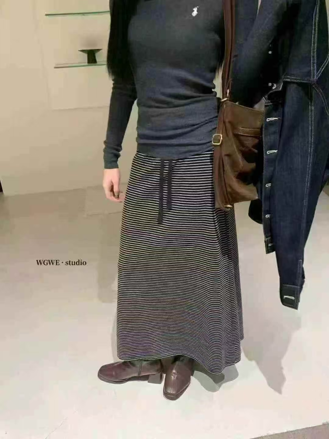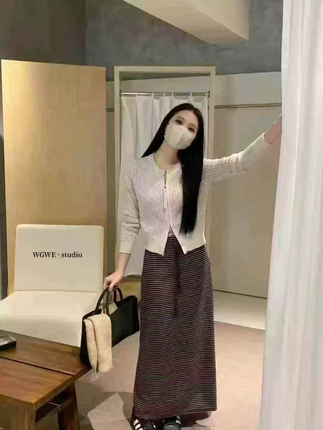 细条纹设计自然拉长比例,让整体线条更显修长与利落✨