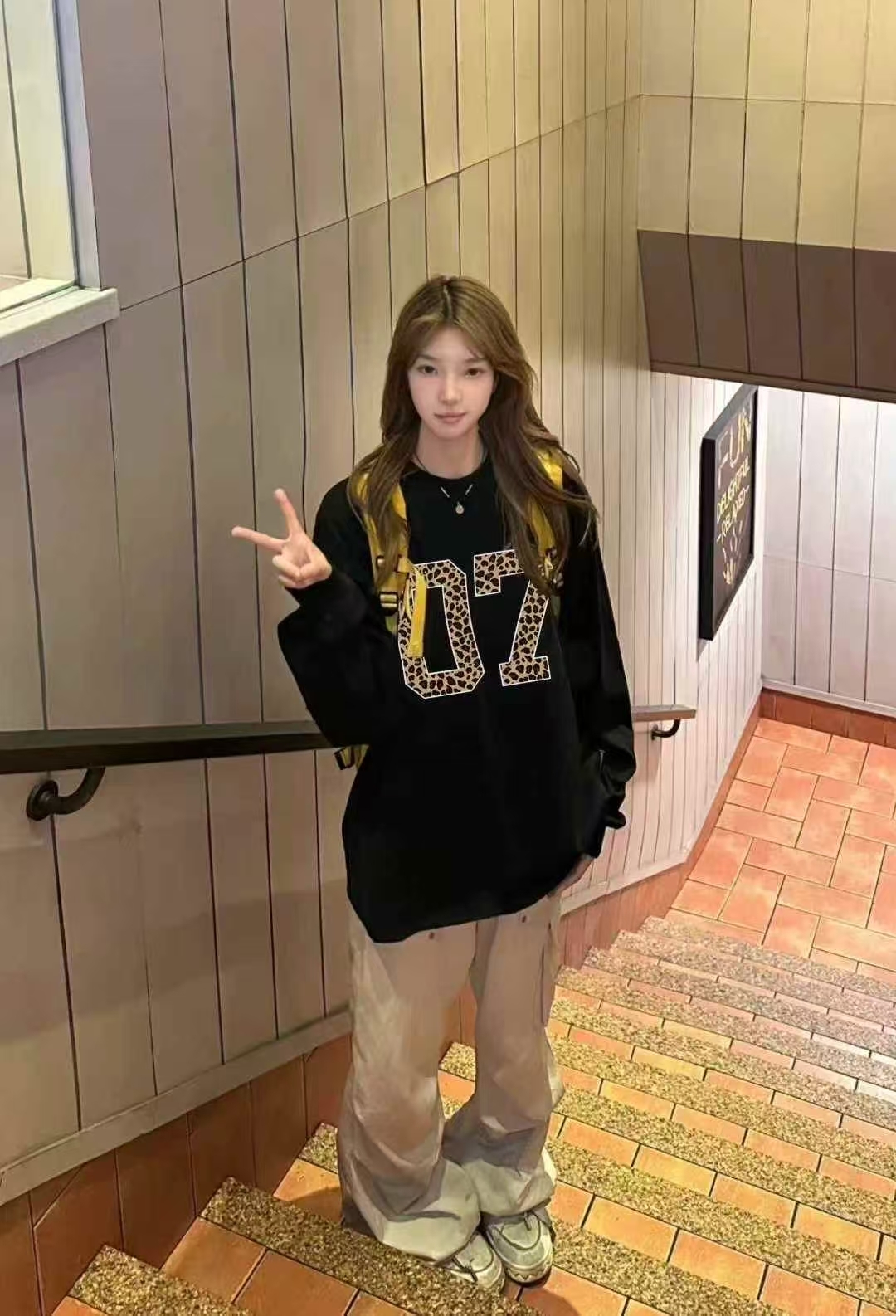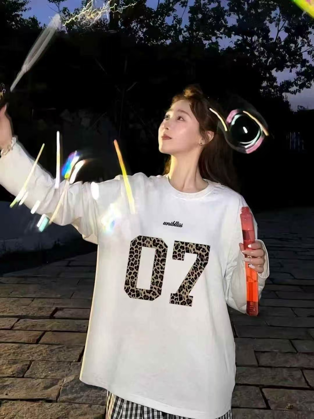 宽松长袖 tee,搭配独特 “07” 豹纹 logo,百搭又有个性。